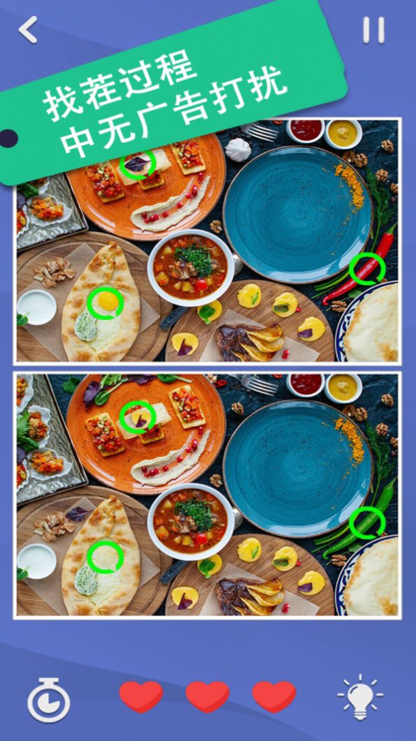 2、多个模式可以自由进行体验畅玩,还有提示可以使用,避免找到,找不到差异而丧失乐趣;