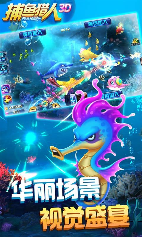 捕鱼猎人是由百纳(武汉)信息技术有限公司2016年重金研发的休闲娱乐3d手游,以深海狩猎捕鱼为题材,加入了竞技模式,并在安卓和ios平台上运行。游戏中,所有的深海鱼类都以3d画面呈现,鱼种丰富多样,画面绚烂细腻,还原了海洋深处的美丽场景。玩家在游戏中不仅可以欣赏到各种深海鱼类,还能与多人一起竞技捕鱼,一较高下。