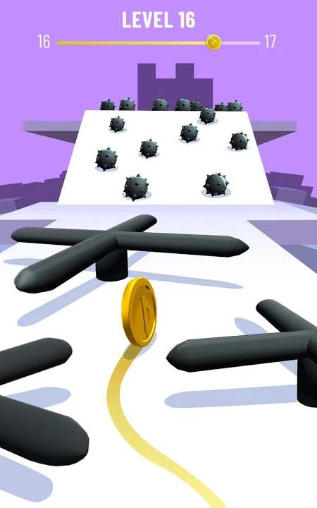 1. 游戏的核心玩法是控制硬币在赛道上滚动前进,同时避开障碍物。玩家需要通过拖动手指在屏幕上滑动来控制硬币的方向和速度。