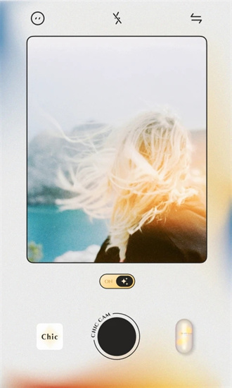 1. 界面设计:chic相机的界面简洁大方,左右滑动即可切换界面,操作便捷。其logo简约高级,给人一种清新脱俗的感觉。