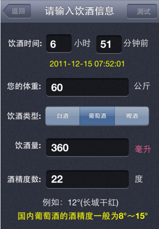 1. 智能算法:采用先进的算法和模型,根据用户输入的饮酒信息(如饮酒量、酒精度数、体重等),快速计算出血液中的酒精浓度。