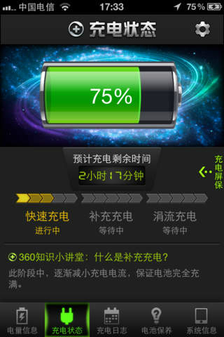 1. 全面的电池保养建议:软件提供每月完全循环充电提醒、充电阶段展示、充满提醒以及专业的电池保养知识。