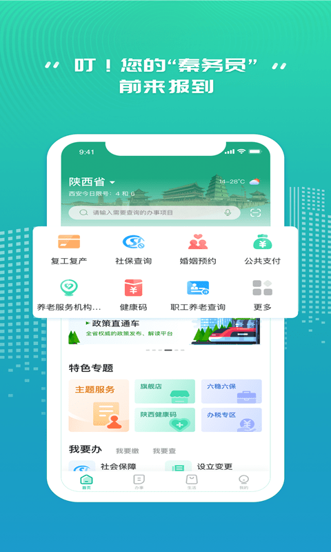 3. 一站式服务:秦务员整合了多项政务服务,用户无需切换多个app,即可享受一站式办理体验。