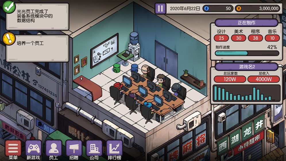 2. 管理员工是游戏中的重要环节,玩家需要招聘合适的员工,并合理安排他们的工作岗位和培训计划。