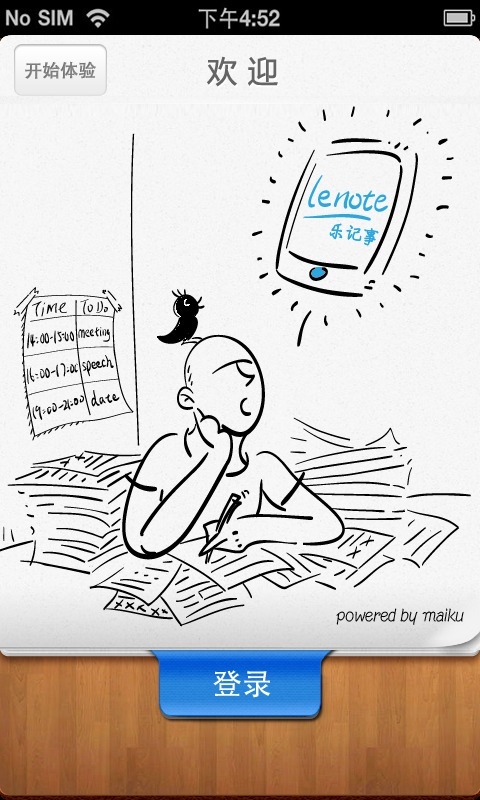 1. 打开乐记事应用,点击下方中间的“按钮”开始新建记事。