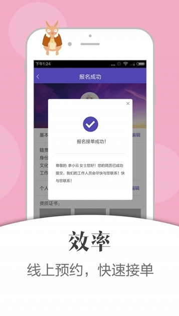 4. 个人资料展示:月嫂可以展示自己的电子名片、服务口号、个性化标签等,提升个人品牌形象。