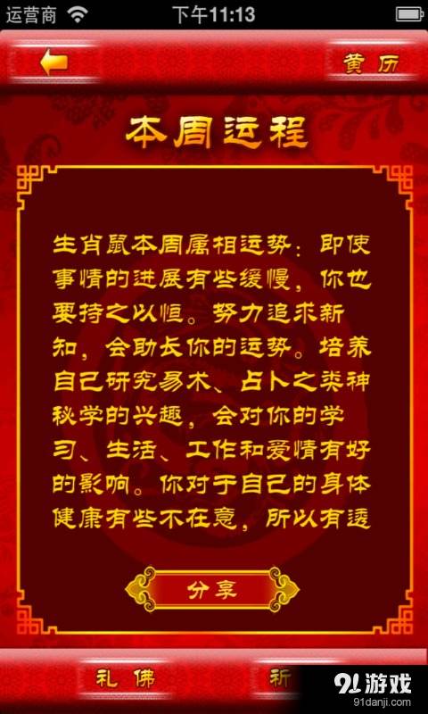 2. 内置命理大师提供的每周运程,帮助用户轻松了解运势,合理规划生活。