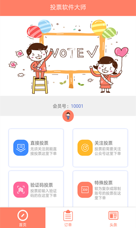 1. 下载并安装投票软件大师app 1.0,注册并登录账号。