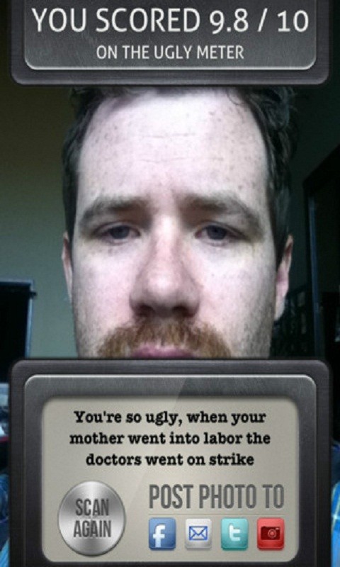 2. 幽默恶毒的评语:评分后附上的评语不仅幽默风趣,而且往往以恶毒的语言调侃用户的长相,增加了软件的娱乐效果。