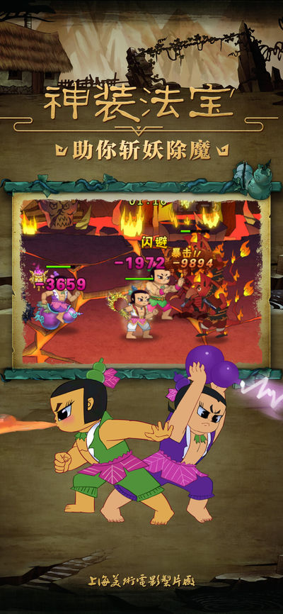 1. 基于家喻户晓的葫芦兄弟故事展开,邪恶蛇精妄图毁灭世界,葫芦娃们挺身而出。