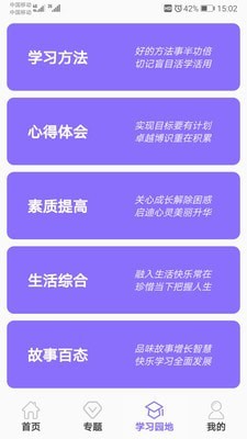 4. 在学习园地中,选择学习方法、心得体会等板块,查看相关内容。