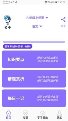 3. 设置了学习园地板块,推送课外知识和中考状元心得,让学生在学习的同时也能放松自己。