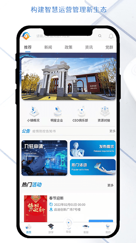 南艳湖机器人小镇是一款由安徽启迪大街科技服务有限公司推出的新闻资讯类安卓软件,它专为南艳湖机器人小镇内的各个园区运营中心设计,旨在提供一系列完善的服务和资讯。通过这款软件,用户可以全方位地了解小镇的创新研发、科技生活、智能生产三大区域的重点楼宇和街道信息,感受小镇的生态功能,并实时获取小镇的最新动态。