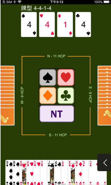 5. 智能机器人搭档:用户可以随时随地和三个高水平桥牌机器人打牌,享受竞技乐趣。