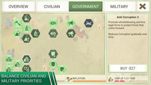 2. 游戏中存在腐败机制,玩家需要谨慎处理腐败问题,以免影响民众支持度。