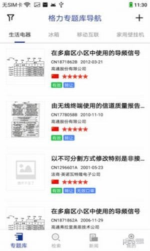 专利检索:用户可以通过输入词组或一段话进行专利检索,查看专利的技术、法律和商业信息。2.