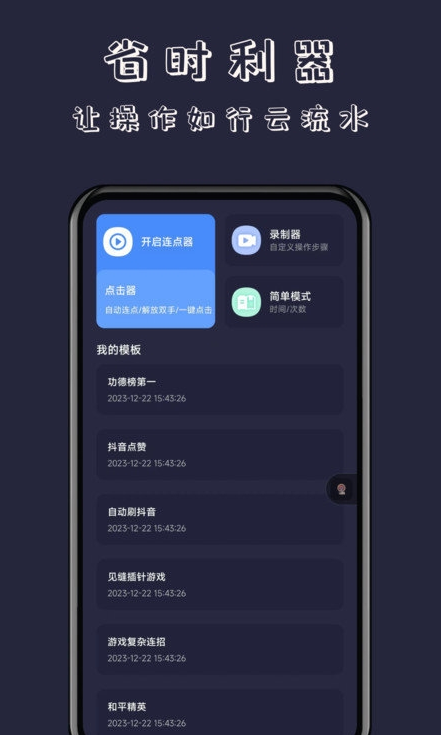 无指自动连点器是一款专为安卓用户设计的强大自动点击工具,旨在帮助用户在需要频繁点击的场景中实现自动化操作,从而极大地提升操作效率并减轻手指负担。无论是沉浸在游戏中需要快速连击,还是在日常应用中处理大量重复点击任务,无指自动连点器都能成为用户得力的助手。用户只需设定好点击的频率和位置,软件即可自动进行连续点击,无需手动干预,极大地节省了时间和精力。