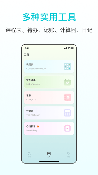 4. 整合课程表、待办清单、记账、计算器等多种实用工具,满足用户多样化需求。