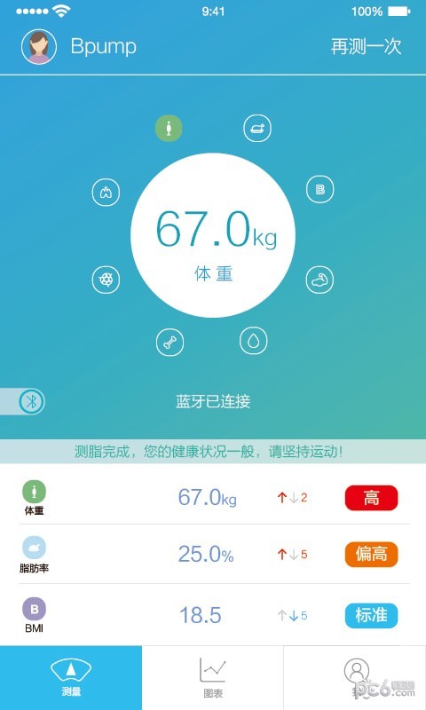 3. 站在体脂仪上,app将自动同步并显示测量结果。
