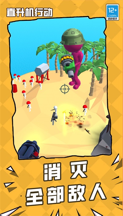 直升机行动是一款紧张刺激的3d直升机冒险射击游戏。玩家将扮演一名直升机炮手,乘坐军用直升机从空中对地面目标进行射击,摧毁敌军的建筑、士兵、军车等。游戏提供了机枪、激光大炮、狙击枪和重型大炮等多种武器供玩家选择,每种武器都有其独特的威力和射击效果。游戏画面精美,场景逼真,音效震撼,让玩家仿佛置身于真实的战场之中。