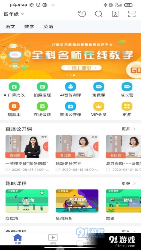 4. 名师课堂与直播授课:提供名师在线教学辅导,更有一对一在线辅导,让学生接受更专业的引导。