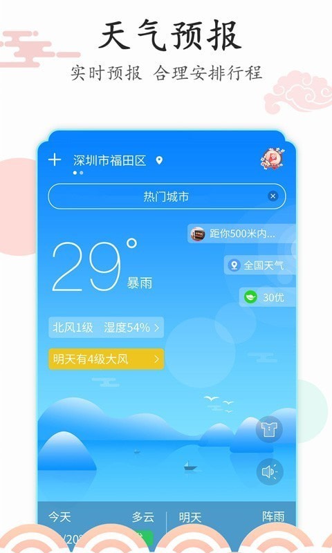 1. 支持天气查询功能,用户可以在这里查询当地的天气预报,更好的了解当地的最新天气信息。