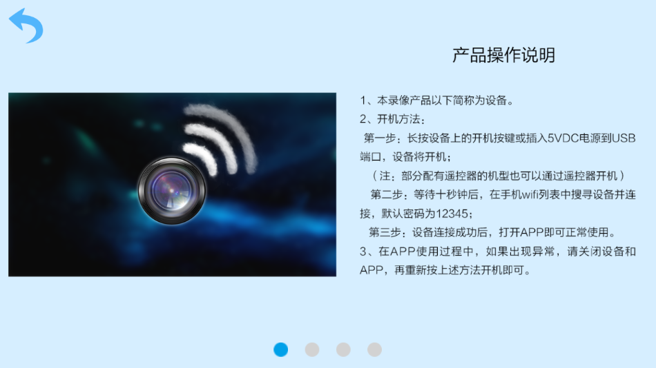 1. 实时视频查看:通过wi-fi连接,实时查看摄像头下的画面。