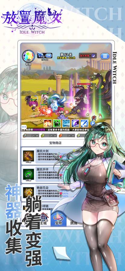 放置战斗:玩家无需时刻操作,只需安排好魔女的战斗阵容,即可自动进行战斗。2.
