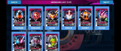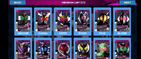 1. 角色选择:玩家可以在游戏开始时选择初始的假面骑士角色,并随着游戏进程解锁更多骑士。