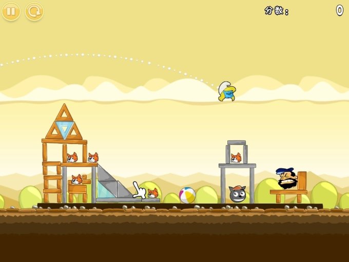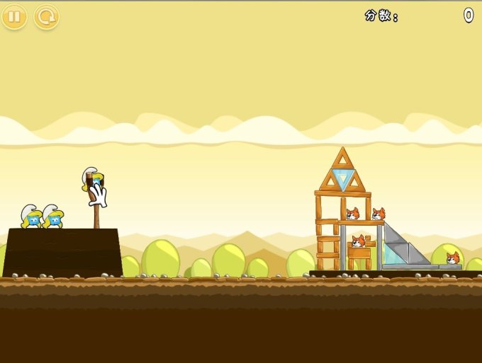 使蓝精灵撞击、毁坏建筑物,消灭敌人。4.