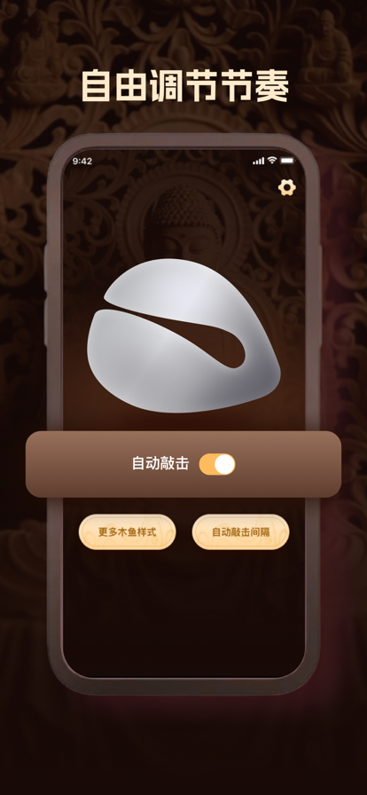 2. 多种敲击模式:提供手动和自动两种敲击模式,满足用户不同的使用需求。手动模式可以真实模拟敲击木鱼的感觉,而自动模式则可以根据用户设定的间隔和停止模式自动敲击。
