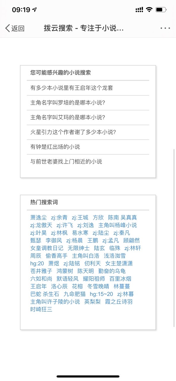 1. 多元搜索维度:拨云搜索提供多种搜索方式,用户可以根据作者名、角色名、背景设定、门派划分、独特绰号、秘籍招式、兵器名、经典口头禅等多元信息点快速找到目标小说。