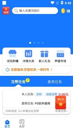 互帮侠是一款专为安卓用户设计的手机兼职赚钱软件,它汇集了海量的悬赏任务,让用户可以在闲暇时间通过手机完成任务赚取零花钱。无论是简单的小任务还是稍微复杂一点的项目,互帮侠都提供了丰富的选择,满足了用户利用碎片时间增加收入的需求。软件界面简洁明了,操作简单易懂,用户可以轻松上手并快速完成任务。