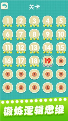 3. 关卡进阶:每完成一关,点击界面中间的三角形按钮进入下一关。