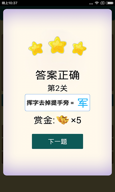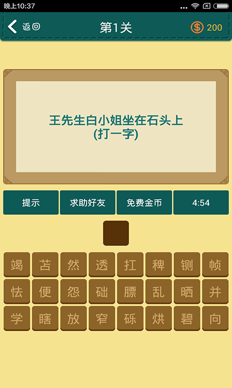 1. 字谜模式:根据游戏提示的语境或语义,猜出正确的汉字。