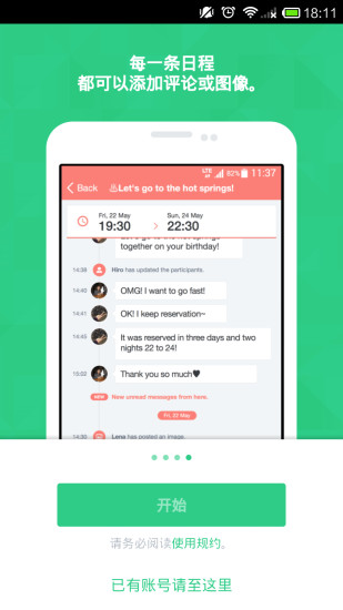 3. 针对创建的每个活动进行如同line一样的聊天,轻松针对每个活动进行联系。
