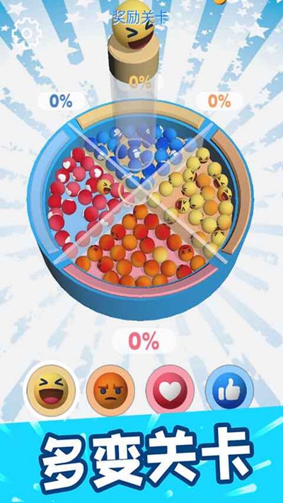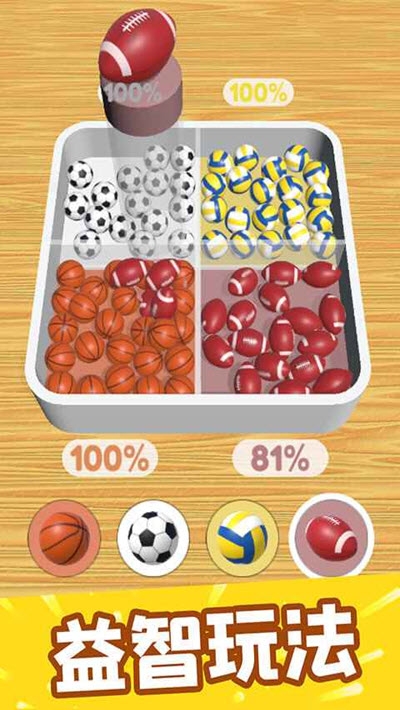 2. 小球:游戏中的核心元素,带有不同颜色的小球需要被玩家分类并放置到相应颜色的区域内。