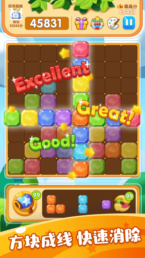 4. 玩家可以通过消除方块获得积分,积分越高排名越靠前,享受成就感。