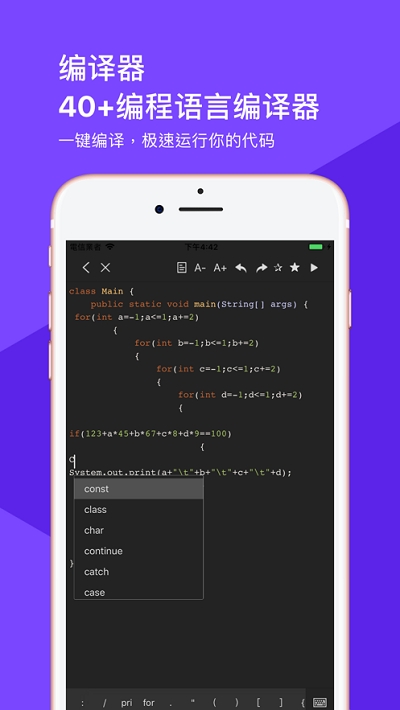 极客编译器是一款专为编程爱好者和开发者设计的安卓软件,它集成了多种编程语言的编译、调试和运行功能,为用户提供了一个便捷、高效的编程环境。这款软件不仅支持多种编程语言,还拥有丰富的代码库和示例,帮助用户快速上手并掌握编程技能。极客编译器以其强大的功能和用户友好的界面,赢得了众多编程爱好者的青睐。