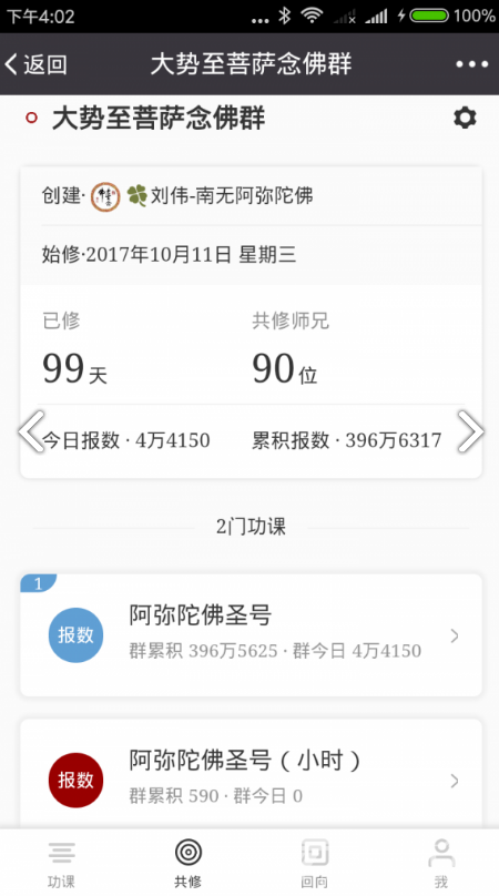 4. 回向功能:报数回向提醒,系统每日发起全站总回向以及群回向,帮助修行者更好地进行功德回向。