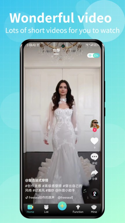 2. 视频浏览:平台采用全屏播放模式,提供沉浸式的观看体验,用户可浏览来自全球各地的精彩短视频。
