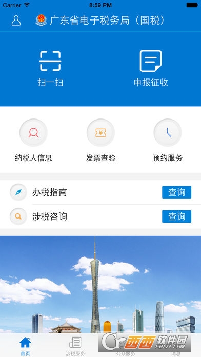 3. 事项办理:涵盖了预约服务、办税指南、涉税咨询、通知公告等事项办理功能,支持获取系统主动推送或个性化定制的各类消息。