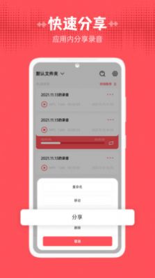4. 文件管理方便:用户可以在软件内管理自己的录音文件,包括重命名、删除、移动等操作。