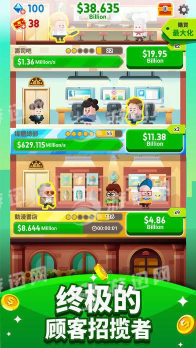 cash inc是一款极具趣味性的卡通模拟经营类安卓游戏。在这款游戏中,玩家将扮演一位大老板,通过点击屏幕来赚取财富,成为所有时代中最富有的资本家。游戏画风q版,画质清晰,玩法简单而富有挑战性,让玩家在轻松愉快的氛围中体验经营帝国的乐趣。