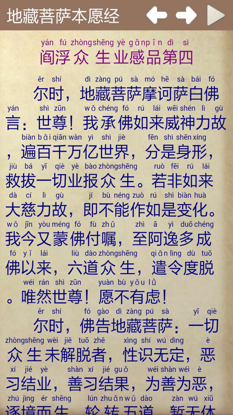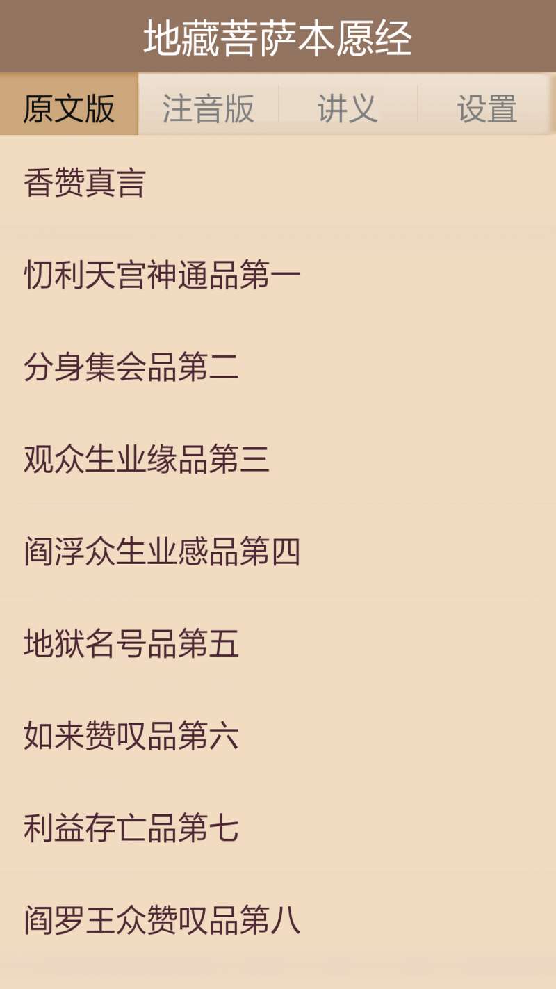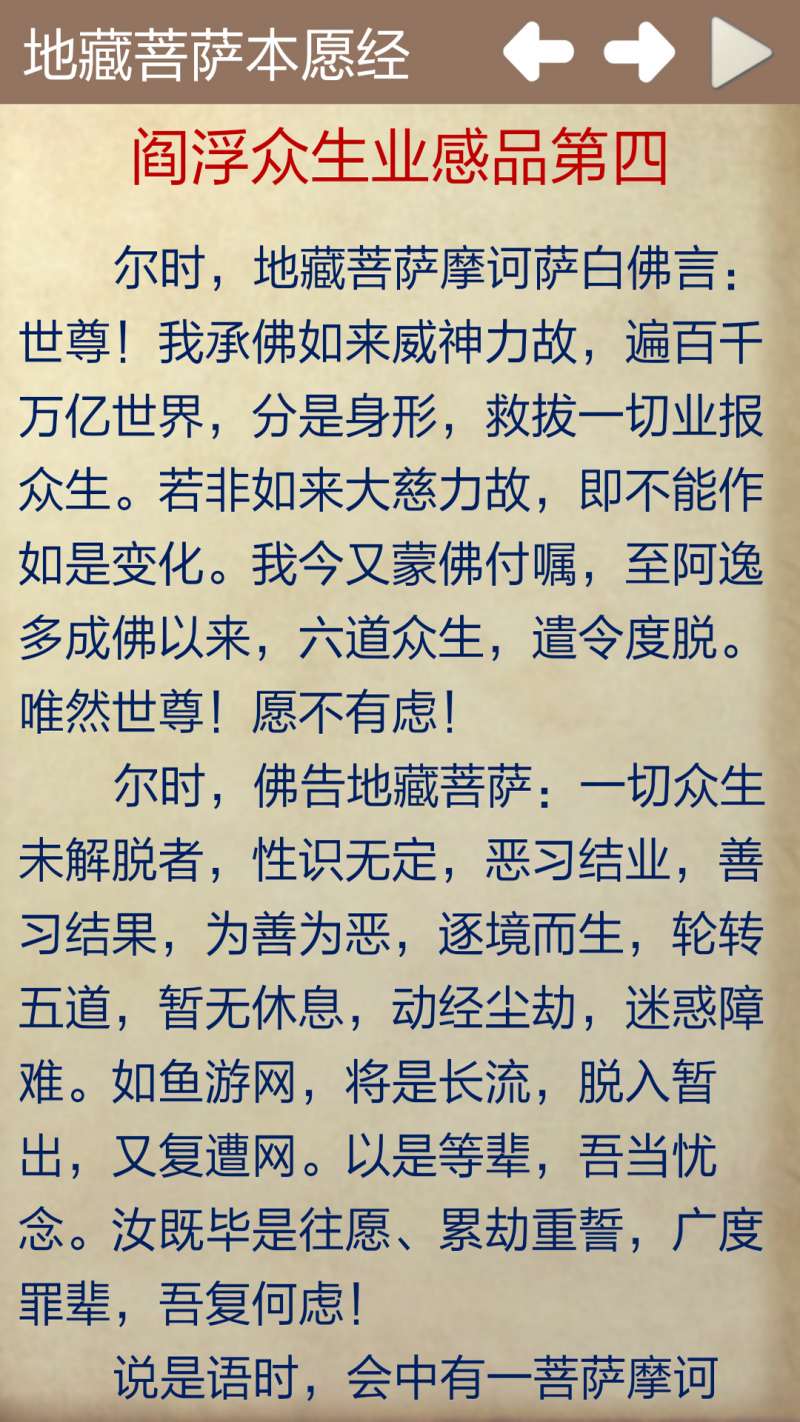 3. 浏览内容:在软件首页,可以浏览到地藏经的各个章节,点击相应章节即可查看详细内容。