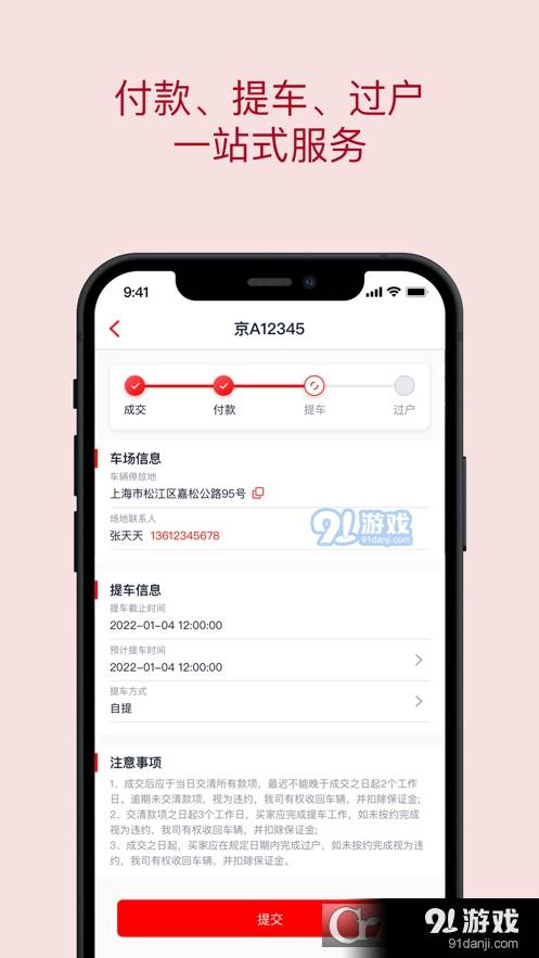 竞拍成功后,与卖家联系并完成车辆交接手续。1.