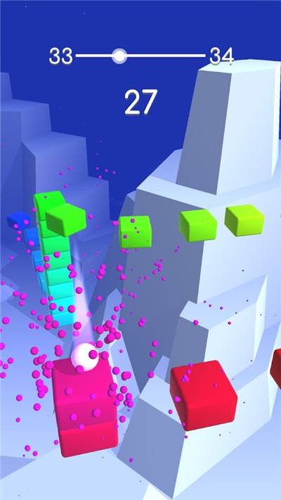 3. 视觉盛宴:击碎彩色小方块时产生的爆炸效果绚丽多彩,为玩家带来极致的视觉体验。