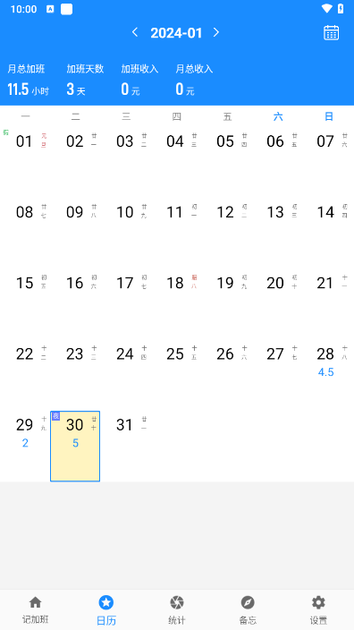 3. 节假日规则适配:内置全国法定节假日及调休规则,准确区分正常工作日与加班时段。