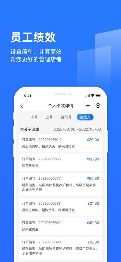 2. 可预设员工提成方案,系统自动计算员工提成,提高工作效率。