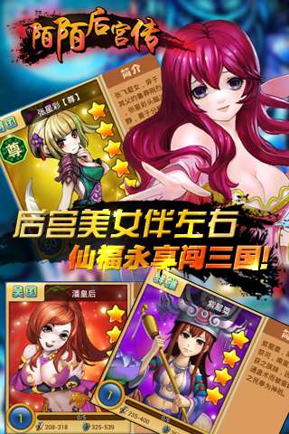 1. 游戏以三国时代为背景,玩家将扮演主公,在乱世中招募名将,收集美人。